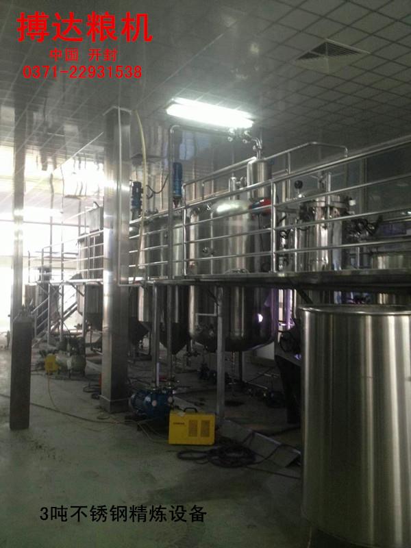 大豆油精煉設備熱脫皮工藝,今年來,大豆油熱脫皮工藝得到較快的發(fā)展和推廣,大豆油熱脫皮紅衣的形式很多,經(jīng)過處理后的大豆直接進入流化床加熱干燥,使表面溫度達到75-92攝氏度,大豆所含水分9%左右,這主要是為了加熱大豆皮和表層,皮松脆易于裂開。然后由輥破碎機將大豆對半破開分為兩瓣,并落入撞擊機利用撞擊機作用使豆皮從仁粒上松脫下來,經(jīng)吸風分離器進行脫皮分離,經(jīng)部分脫皮的半粒狀大豆再經(jīng)過齒輥破碎機破碎成符合軋坯要求的粒度,而后又經(jīng)撞擊機和多級撞擊和多級吸風分離器進行第二次脫皮分離,分離出的豆仁至下道工序,豆皮收集后送至豆皮倉庫,該工藝與冷脫皮工藝相比周期短,短時間的高溫處理減少了大豆油中油脂的變質和蛋白質的變性。熱大豆破碎后的粉末度減小,這將更有利于皮仁的分離,減少皮中的含仁量。經(jīng)脫皮后的熱豆粒可直接進行軋坯,或為加熱軟化后再去軋坯,這將大大降低生產(chǎn)過程中的蒸汽消耗。