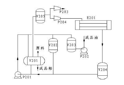 E201冷凝器 P201溶劑泵 P202成品泵 P203真空泵 P204壓縮機(jī) V201浸出罐 V202混合液暫存罐 V203蒸發(fā)罐 V204溶劑罐 V205緩沖罐